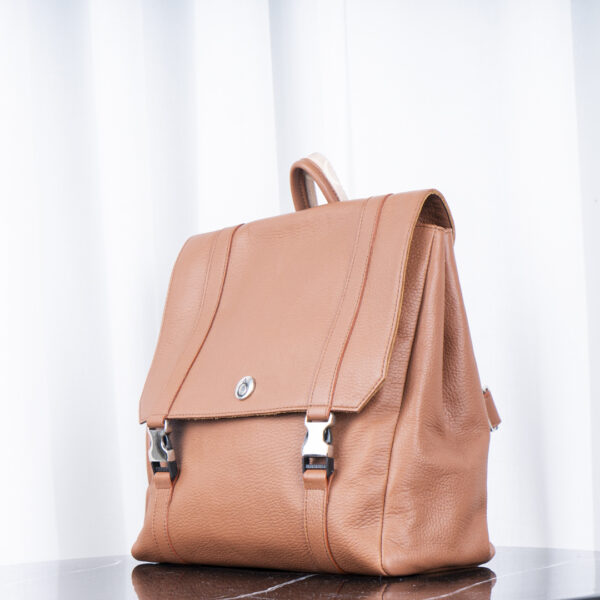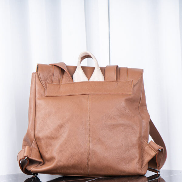 Mochila confeccionada en cuero de primera calidad. Íntegramente forrada por dentro. En su interior contiene bolsillo. Fabricada con distinguidos herrajes y cierres metálicos.